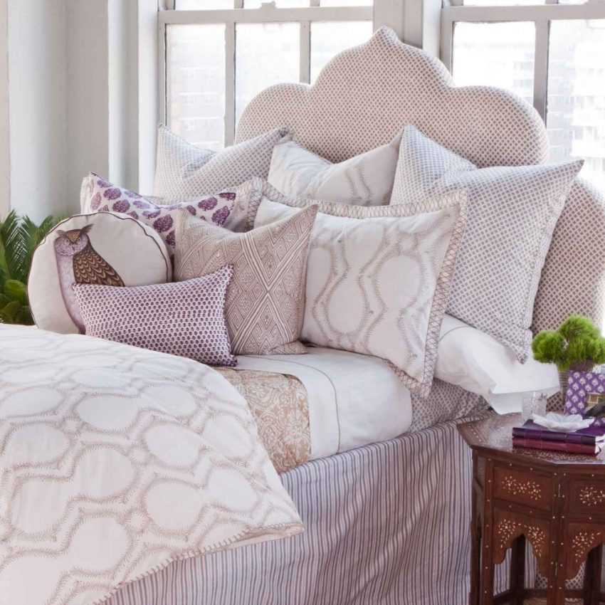 Например, декоративными подушками можно изящно оформить зону изголовья. Подушки могут быть высокими, их может быть много. Иногда рисунок или принт, который размещен на подушках, повторяется в маленькой картине в зоне изголовья.