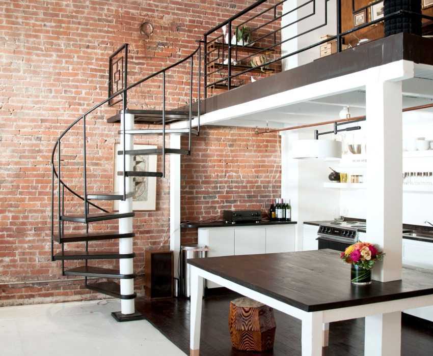 Материалом для винтовых лестниц служит дерево или металл. Ступени клиновидной формы крепят вокруг центральной стойки либо столба. Чаще всего стойки делают из металлической трубы. К ней ступени прикрепляют узкой частью. Их широкая сторона соседствует со стеной либо балясинами.