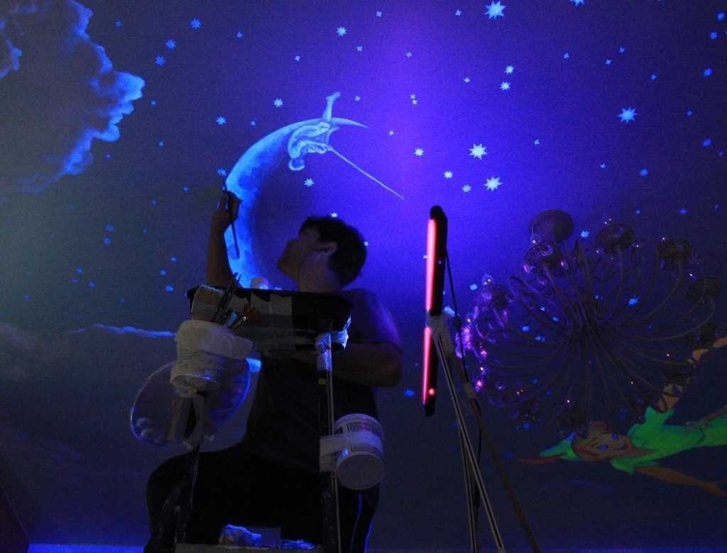 Натяжной потолок Звездное небо с помощью люминесцентной краски