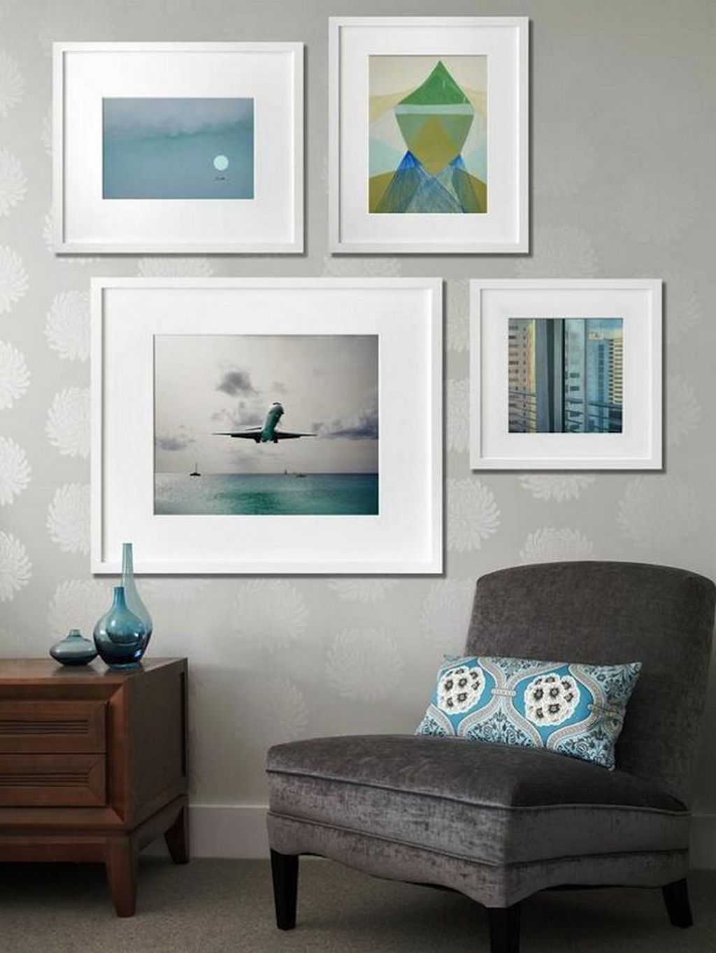 Важно, чтобы внешние края собрания картин образовывали четкий, правильный прямоугольник. Это придаст композиции уравновешенность.
