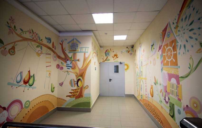 На стенах в комнате изображают загадочный лес, героев из мультфильмов и сказок. Именно поэтому для декора нужно выбирать светло-голубые, розовые, светло-зеленые или персиковые тона.