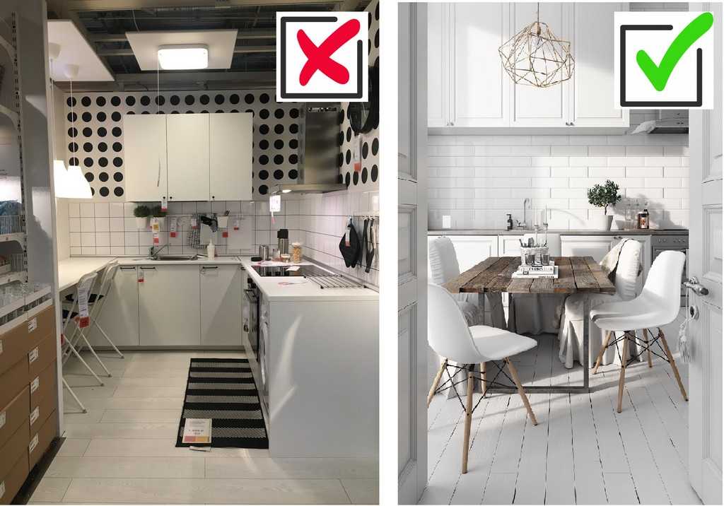 Визуально расширяет пространство. Для владельцев маленькой кухни такое решение будет особенно актуальным.
