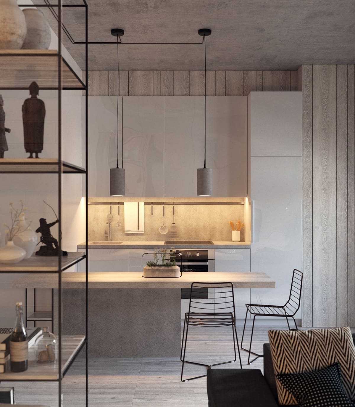 Если боитесь, что дизайн получится слишком холодным и неуютным, добавьте деревянных поверхностей.