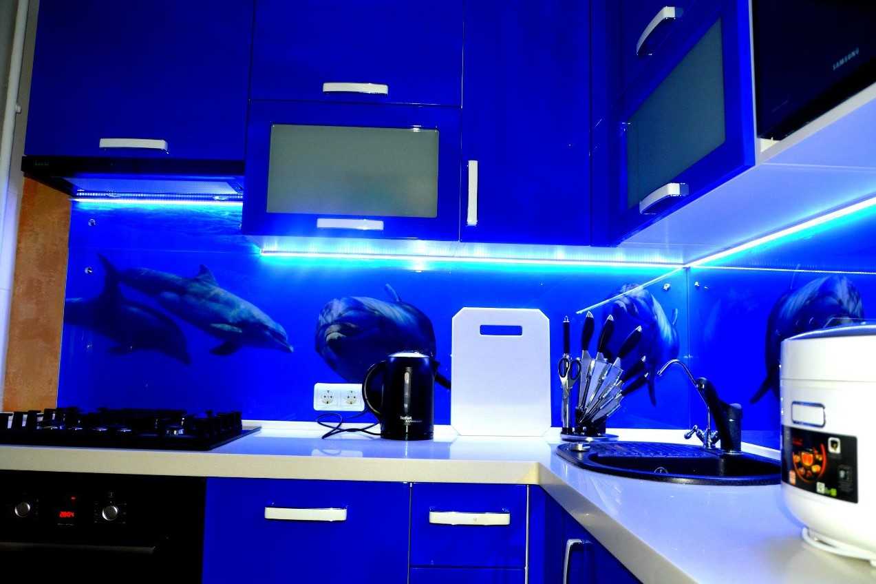 Даже если вы продумали интерьер до последнего чехла на подобранном в тон стуле, если не выстроен как надо свет, с любовно отстроенной гармонией придется распрощаться. Освещение должно быть не только эффективным, но и полностью вписываться в эстетическую концепцию вашей кухни. В случае с синим цветом ключевую роль отыгрывает светодиодная подсветка: для ее организации лучше подобрать модуль с монохромным свечением. Белый подходит идеально: он извлекает на поверхность все преимущества синевы и компенсирует некоторую угрюмость.