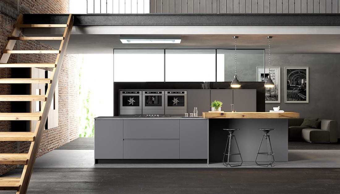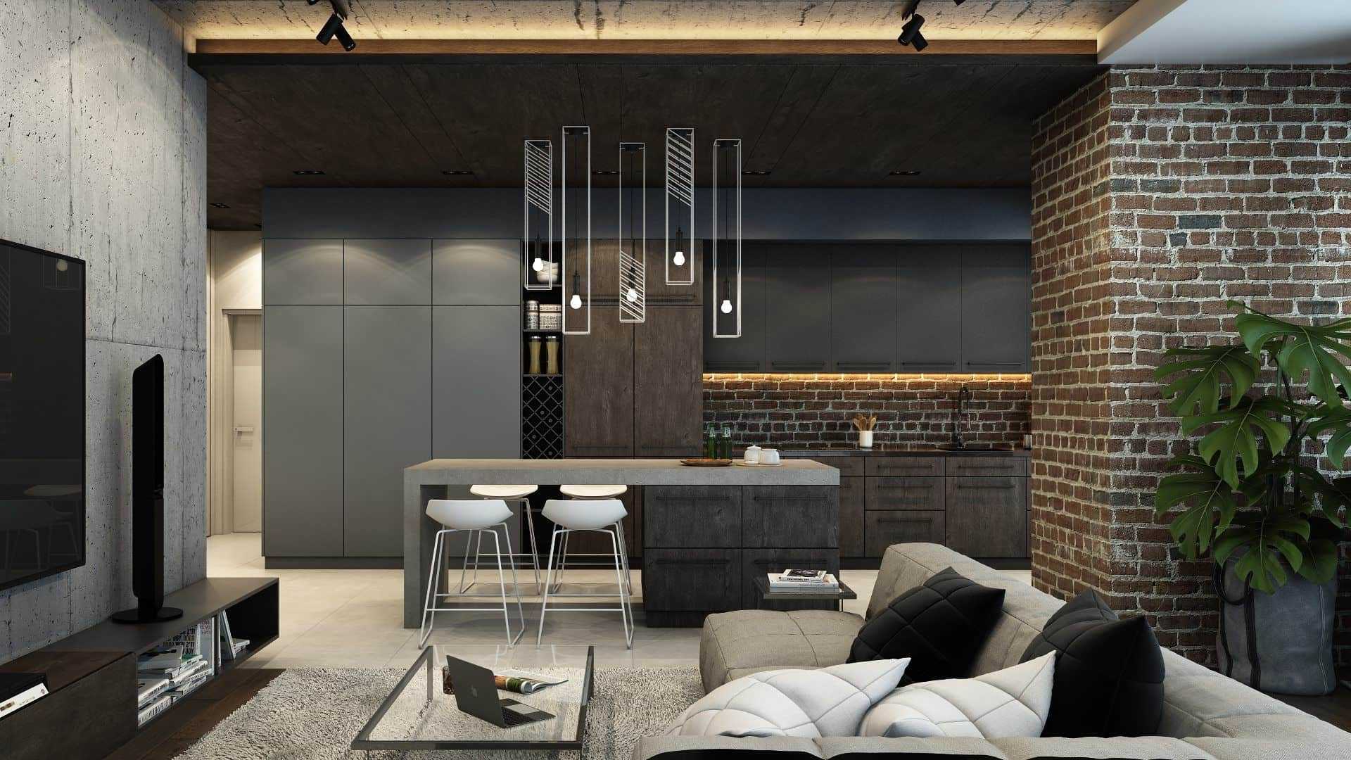 Не важно, какими будут фасады – можно выбирать и матовые, и глянцевые, с филенками или гладкие. Главное – создать творческое атмосферное пространство в индустриальном духе
