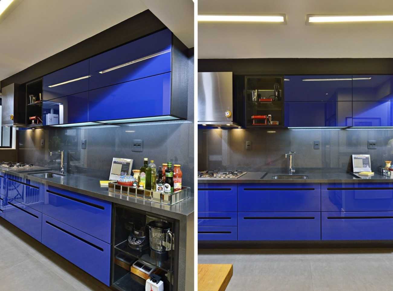 Хай-тек – оформление кухонного пространства в синем оттенке будет выглядеть ярко и стильно. Все тона подойдут для дизайна hi-tech