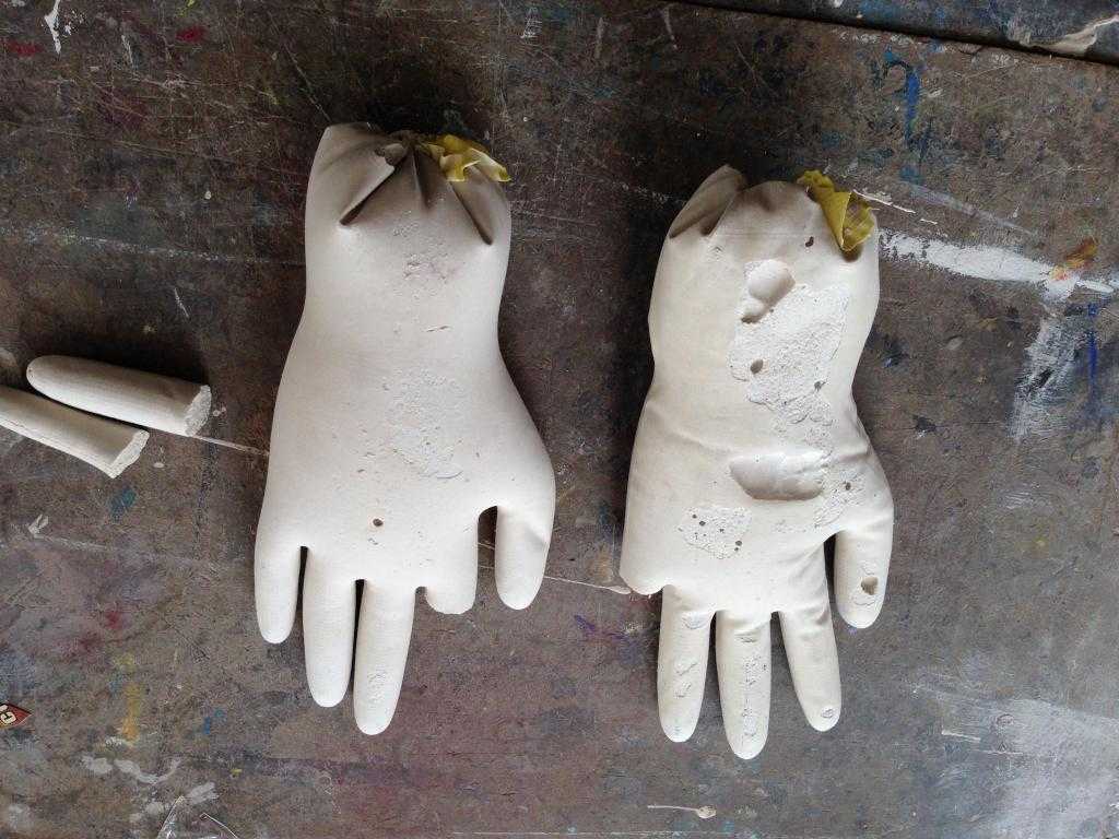 - Слепок с помощью наполнения гипсом резиновой перчатки.