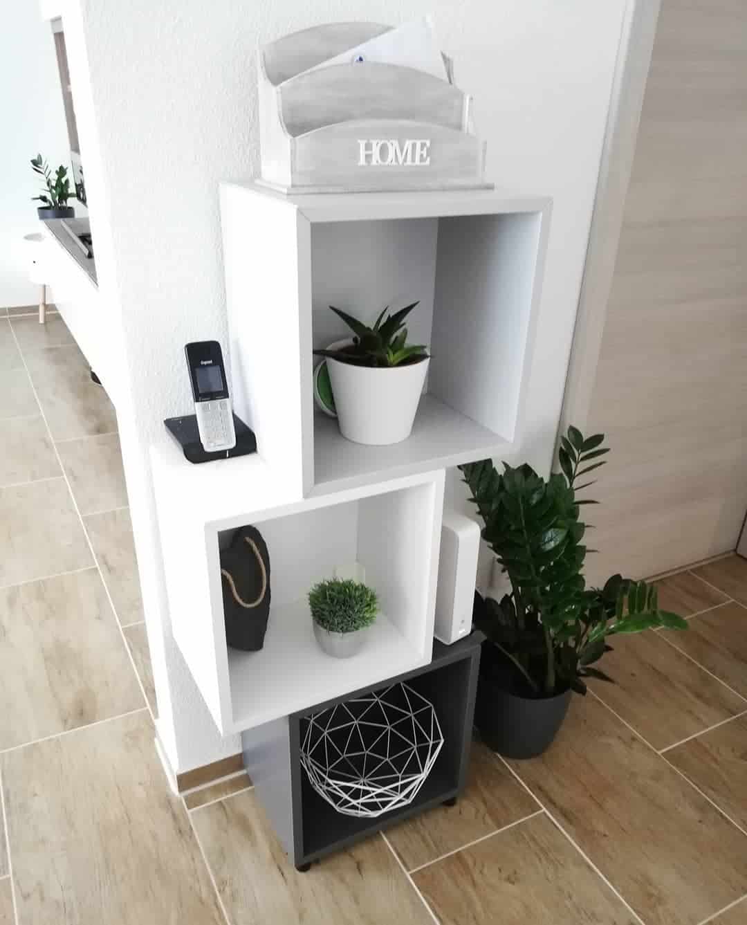Создайте ниши. Сделайте отверстие в стене и установите туда тумбу или поместите полки для мелких принадлежностей или обуви в сезон.