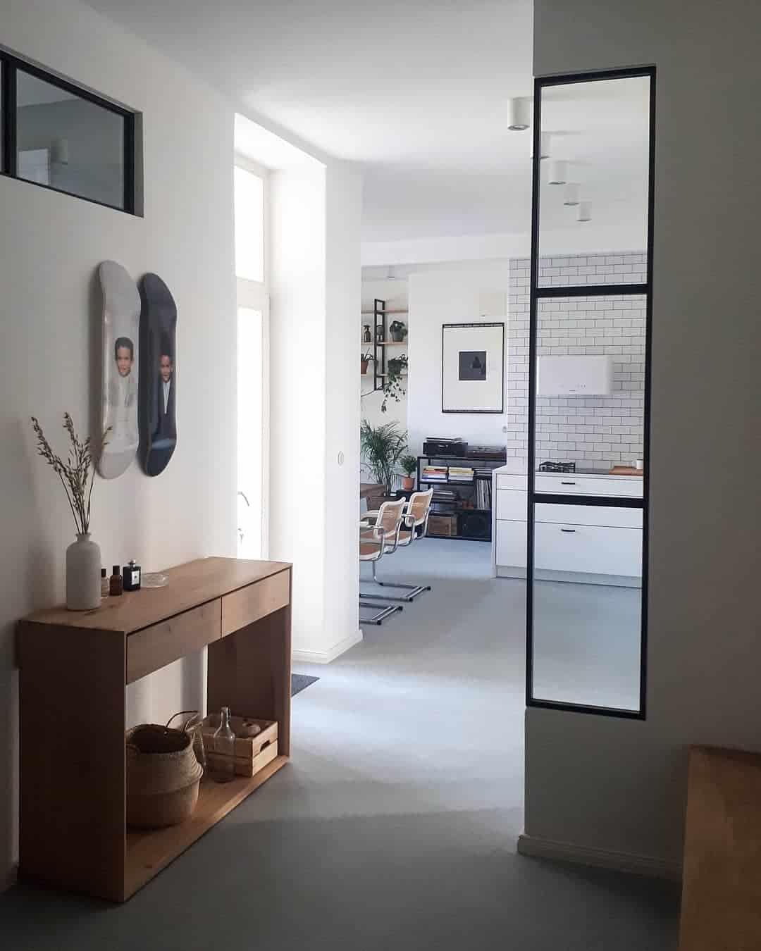 Тенденция заключается в том, чтобы покрасить стены нейтральным цветом, чтобы создать эффект единого пространства с залом и этим максимально расширить площадь.