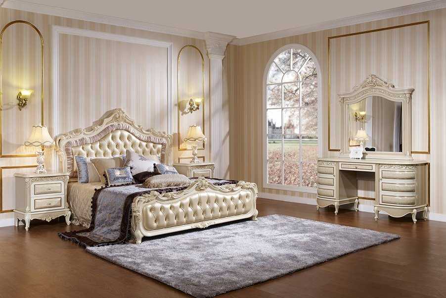 Беспроигрышное сочетание для классической спальни – светлое дерево и приглушенный, состаренный декор (фото 3). Припорошенное временем золото и витиеватые узоры придают спальне некоторую антикварность и загадочность.