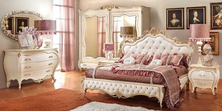 Барокко и рококо – хороший выбор для женской спальни. Замысловатые узоры, изящные флористические мотивы, сочетание приглушенных розового и мятного цветов – всё это создает воздушную комнату с весенним настроением.