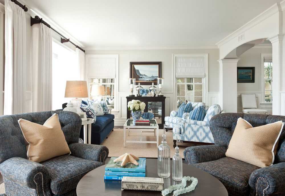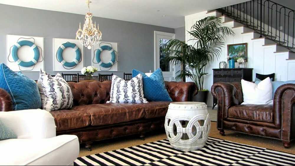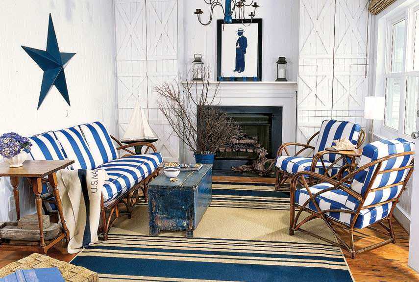 К примеру, морской стиль в интерьере гостиной чаще всего