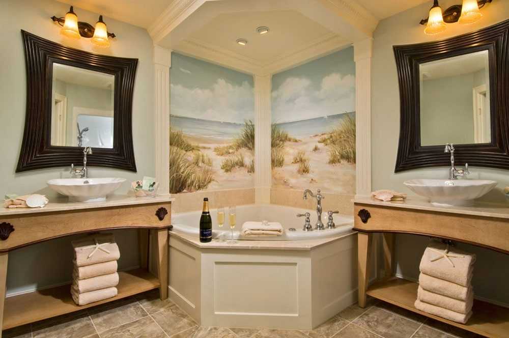 Цвет морской волны будет напрямую ассоциироваться с морской лагуной и окажет расслабляющий эффект. Интерьер в морском стиле предполагает использование натуральных материалов, цвет натурального дерева или камня гармонично впишется в общую стилистику помещения.