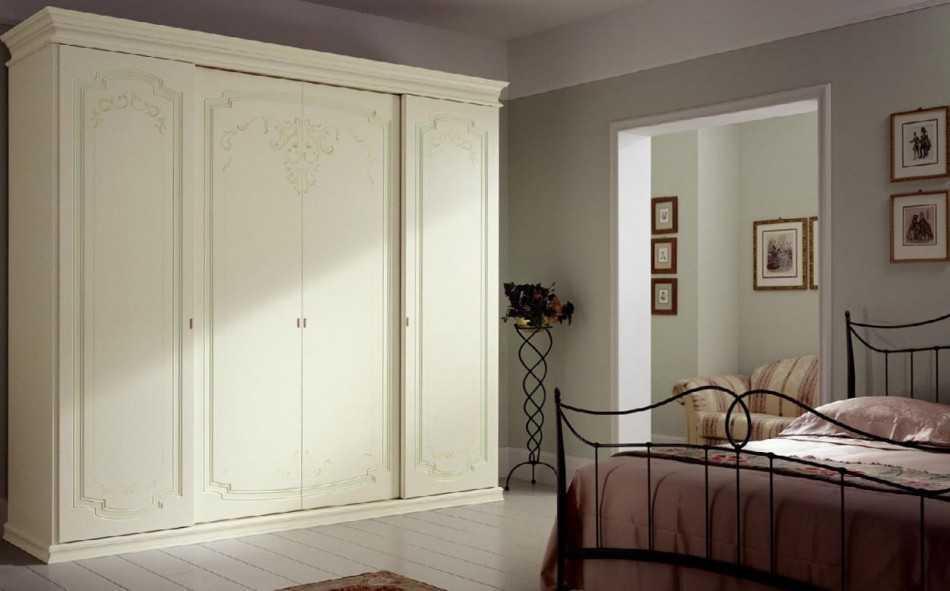 Наилучшим вариантом станет модель с распашными дверками. Дополнительную привлекательность такому старомодному шкафу придаст резьба на фасадах и некоторые потертости, свидетельствующие о почтенном возрасте.