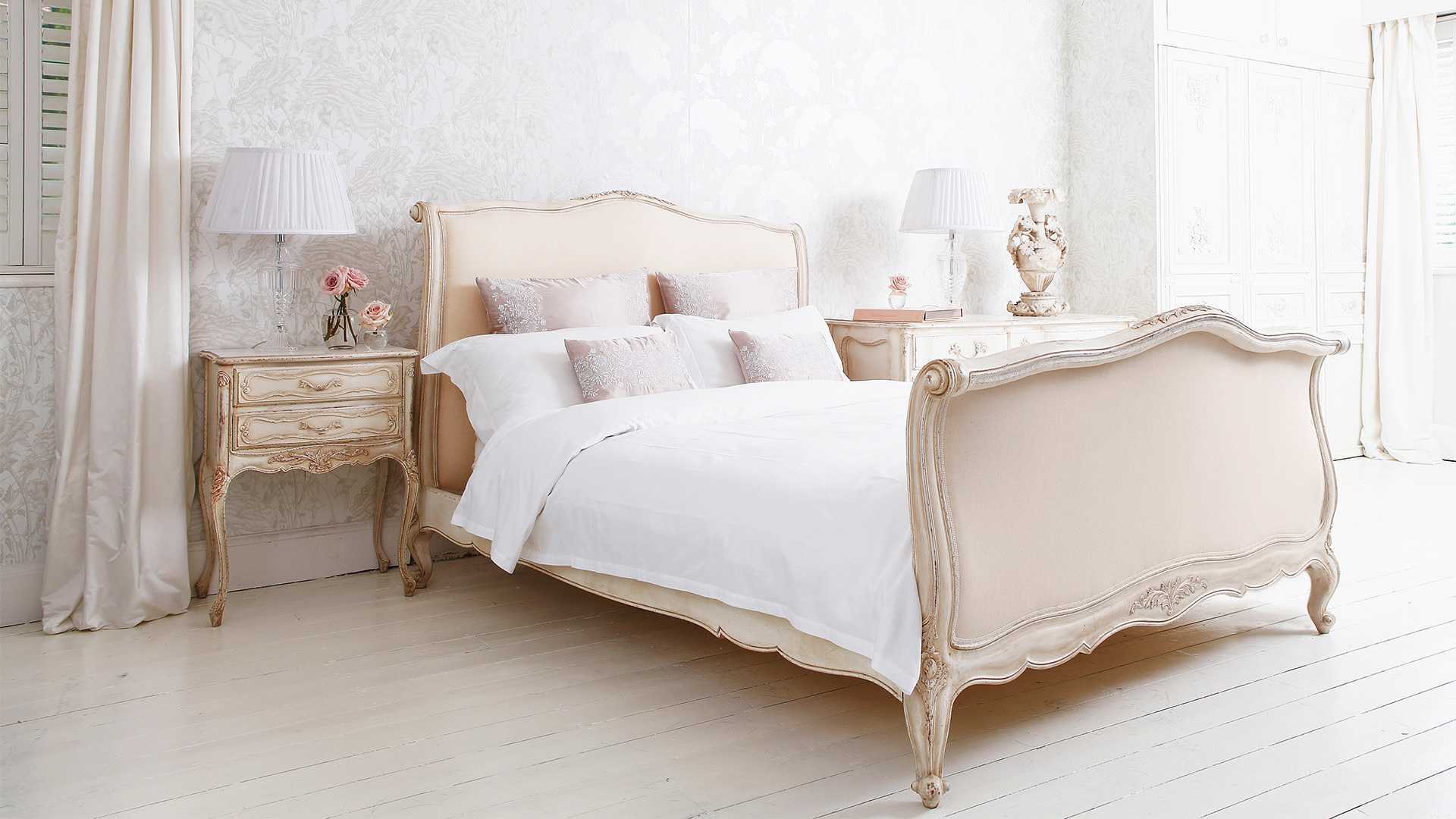 Чтобы отыскать подходящую модель, придется приложить усилия: французская кровать должна быть широкой, с большим, фигурным изголовьем из дерева или кованых прутьев, на приземистых ножках. Основательность, массивность деревенского ложа смягчается плавностью линий, резными деталями и завитками из металла.