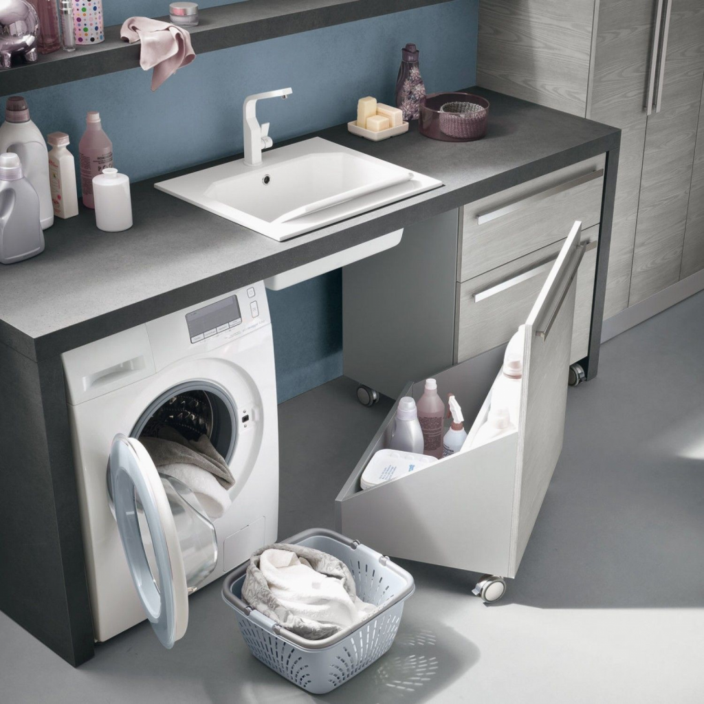 Если у нас есть ниша в ванной, то выделите ее полностью в уголок для прачечной. В дополнение к технике вы сможете там разместить все принадлежности, необходимые для стирки. Ниши легко создать и скрыть. Таким образом, вы сконструируете мини-пространство для прачечной.