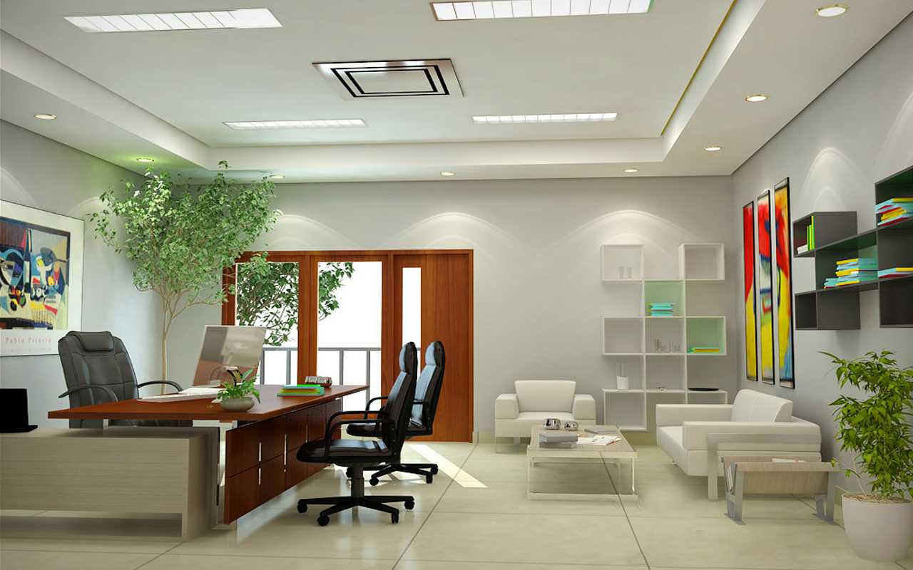 Холодные нейтральные цвета создают деловое настроение, теплые насыщенные тона подходят для творческой атмосферы, способствуют дружественному рабочему климату. Цветовое решение зависит от качества освещения и от того, на какую сторону выходят окна. Если окна обращены на север, лучше предпочесть теплые тона. Если окна выходят на юг или в офисе применяется искусственное освещение — стены делают светлыми, холодного оттенка.