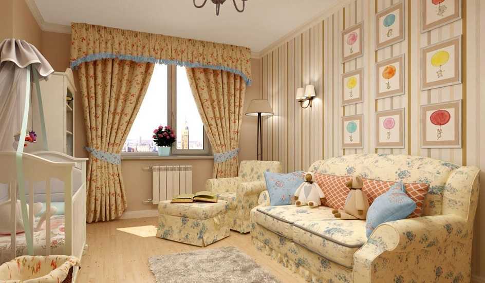 Детскую комнату следует оформлять в светлых тонах, можно смело использовать всю природную пастельную гамму, именно она характерна для юга Франции – это желтый цвет, лавандовый, голубой, бледно-розовый, кремовый, мятный. Комнату с южной стороны, в которой большую часть времени проводит юная леди, стоит оформить в прохладных тонах: голубом, розовом, лавандовом. Если детская расположена с теневой стороны, то лучше выбрать цвета теплого спектра: солнечно-желтый, цвет травы, лимонный.