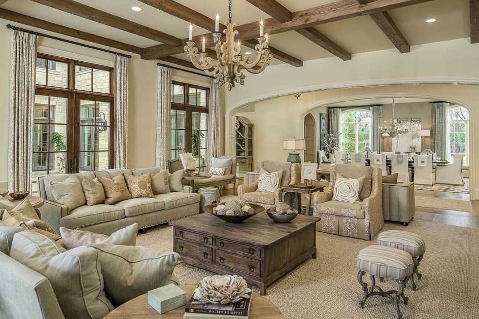 Пространство ни в коем случае не нужно загромождать. Обстановка выполнена с легкостью и непринужденностью, а мебель расставлена подчеркнуто небрежно. Отличительной особенностью является многообразие люстр и светильников, которые расставлены по разным частям гостиной или спальни.