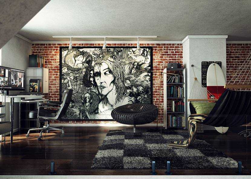 Индустриальный лофт. Выбирайте современные предметы в стиле минимализма: столы, стулья и кровати простых форм, диван и кресла с кожаной обивкой. Столы, тумбы и стеллажи изготавливаются из дерева и металла и напоминают о фабричном интерьере. Платяной шкаф можно заменить напольной вешалкой, а стулья — промышленными табуретками.