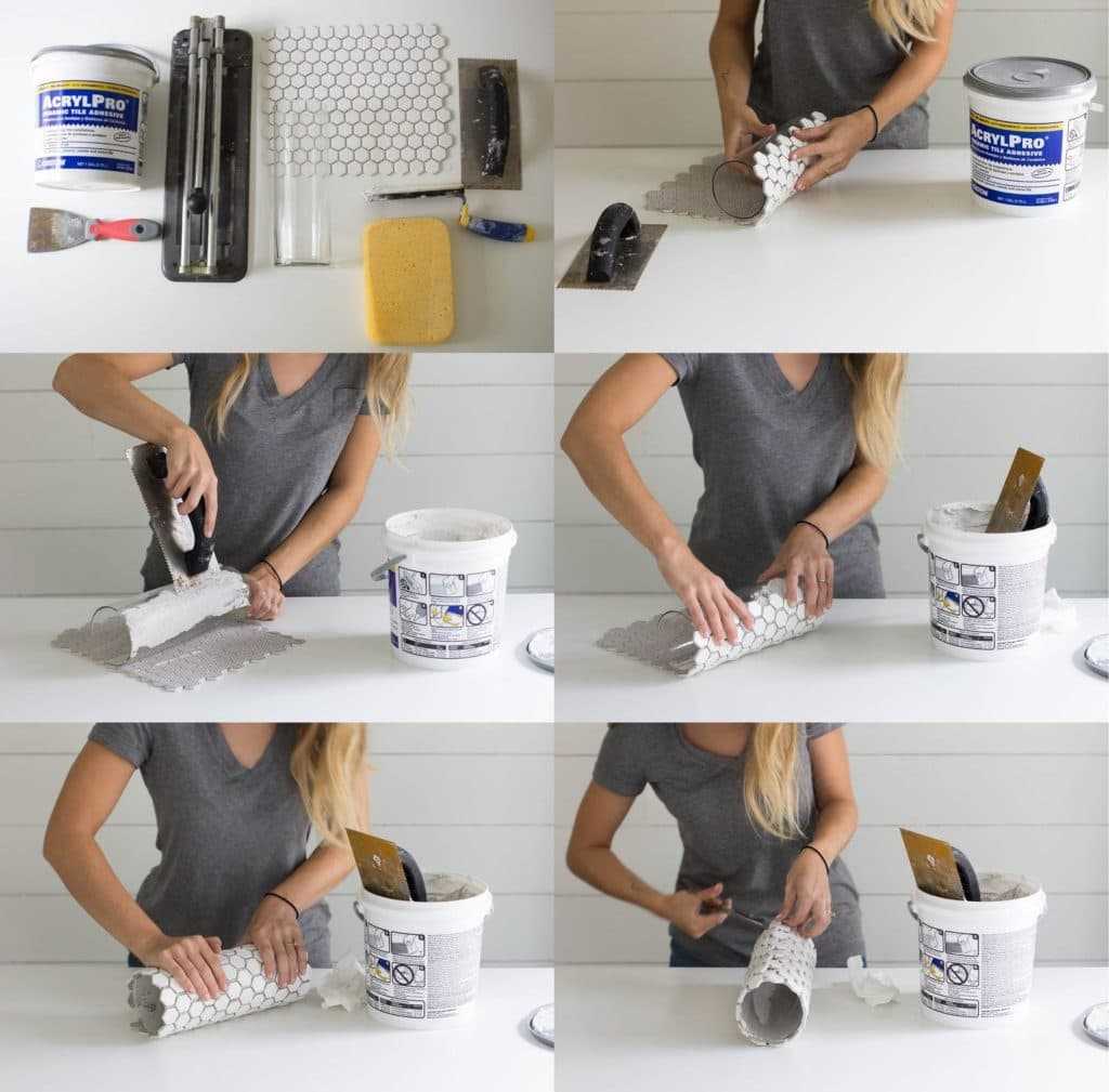 Измерять высоту полученной пластиковой заготовки и обхват. По полученным меркам вырезать прямоугольную деталь, не забывая прибавить по высоте +2 см, а по обхвату + 1 см. Эти прибавки нужны, чтобы полностью закрыть пластиковую основу.