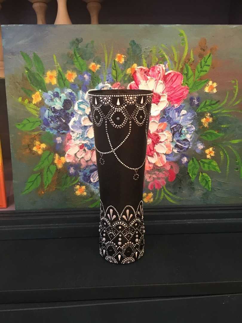 Техника предполагает огромное разнообразие рисунков и орнаментов. Поэтому декор вазы для дома своими руками в такой технике станет приятным времяпровождением.