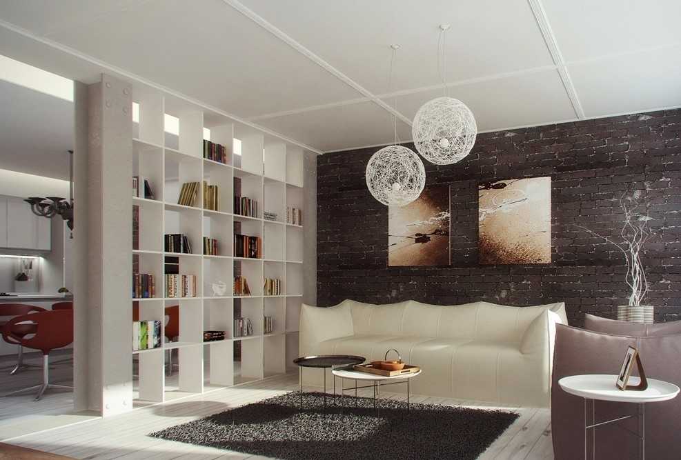 Дизайнеры рекомендуют разделять гостиную на две зоны: первая – для столовой, вторая – место для отдыха. Декоративной перегородкой может служить оригинальная конструкция из стекла или простая ширма. Выбор конкретного материала зависит от общей цветовой гаммы в гостиной, мебели внутри и стилистического направления. Декоративные перегородки в гостиной: