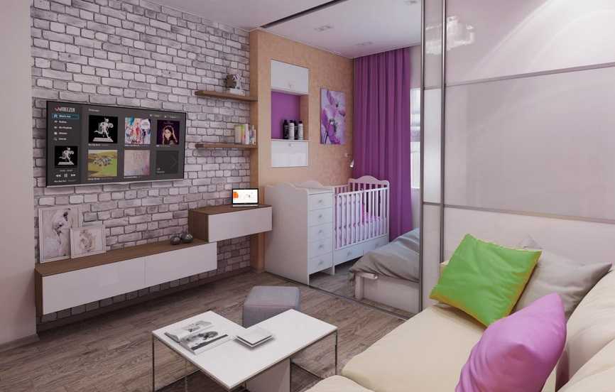 Интерьер однокомнатной квартиры для семьи с ребенком