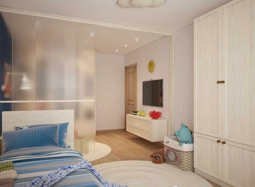 Будет ли это легкая полупрозрачная занавеска или плотная портьера — зависит от возраста и предпочтений проживающих. Если малыш ещё совсем маленький, то его кроватку можно поставить за воздушной занавеской, которая придаст помещению легкости. Ну а при наличии подросшего ребёнка для разделения стоит выбирать все же портьеры из плотного материала.