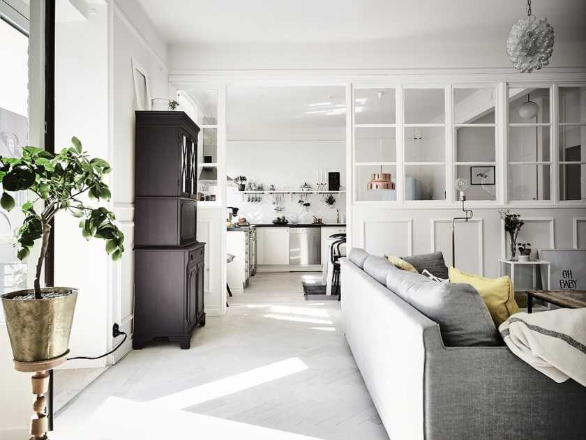 Второй метод – расстановка мебели и перегородок – уместен в тех случаях, когда позволяют метры. В противном случае дополнительные перегородки забирают пространство, большое количество мебели загромождает свободу и создает визуальную тесноту в помещении. Поэтому вместо полноценных перегородок-стен можно установить невысокие ограждения-заборчики, раздвижные двери, переносные ширмы.