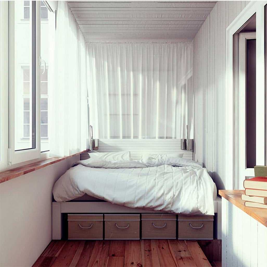 Если в квартире-студии вы стали еще и счастливым обладателем балкона, то вам несказанно повезло. Балкон можно использовать как отдельное помещение для организации зоны отдыха. В зависимости от его размеров, можно даже поставить кровать. Если провести систему отопления, то можно спать там даже зимой.
