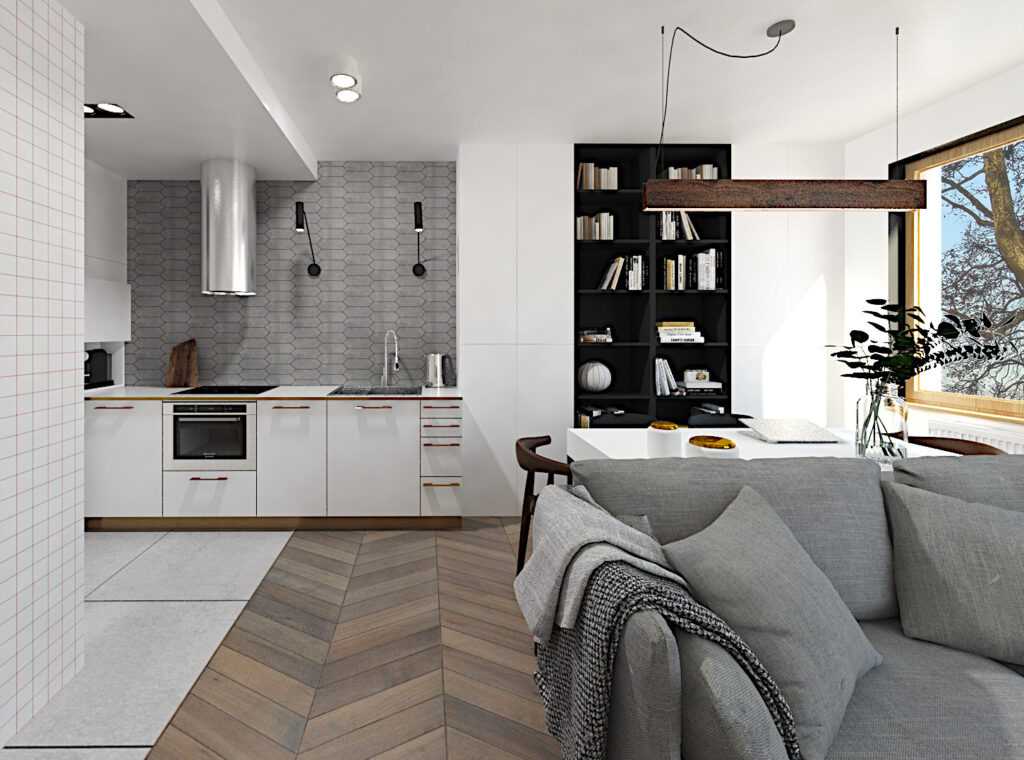 Как бы не хотелось домочадцам, квадратных метров по волшебству больше не станет. Поэтому стоит тщательно продумать не только зонирование, но и сочетание форм, оттенков и фактур таким образом, чтобы пространство казалось просторнее, а стены шире.
