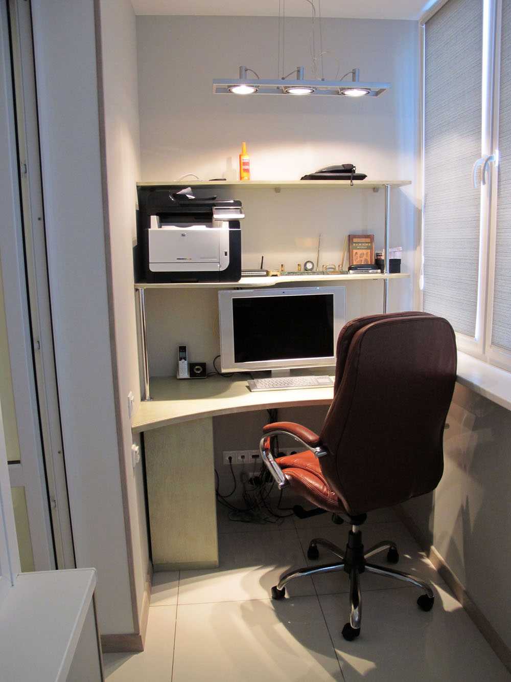 Также можно организовать на балконе рабочую зону. Стол и стул вполне вместятся даже на небольшом пространстве. Таким образом, вы отделите рабочее место от общего помещения. А это как утверждают психологи сделать необходимо, иначе мозг отдыхает не полностью.