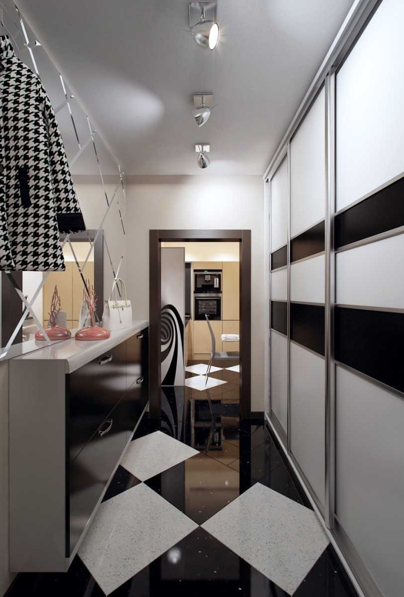 Площадь застекленного и утепленного балкона можно присоединить к примыкающей комнате, прихожую объединить с коридором, разделив на функциональные отсеки по принципу зонирования, чтоб организовать небольшую гардеробную.