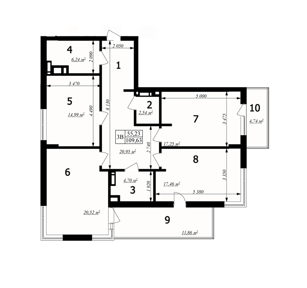 План трехкомнатной квартиры