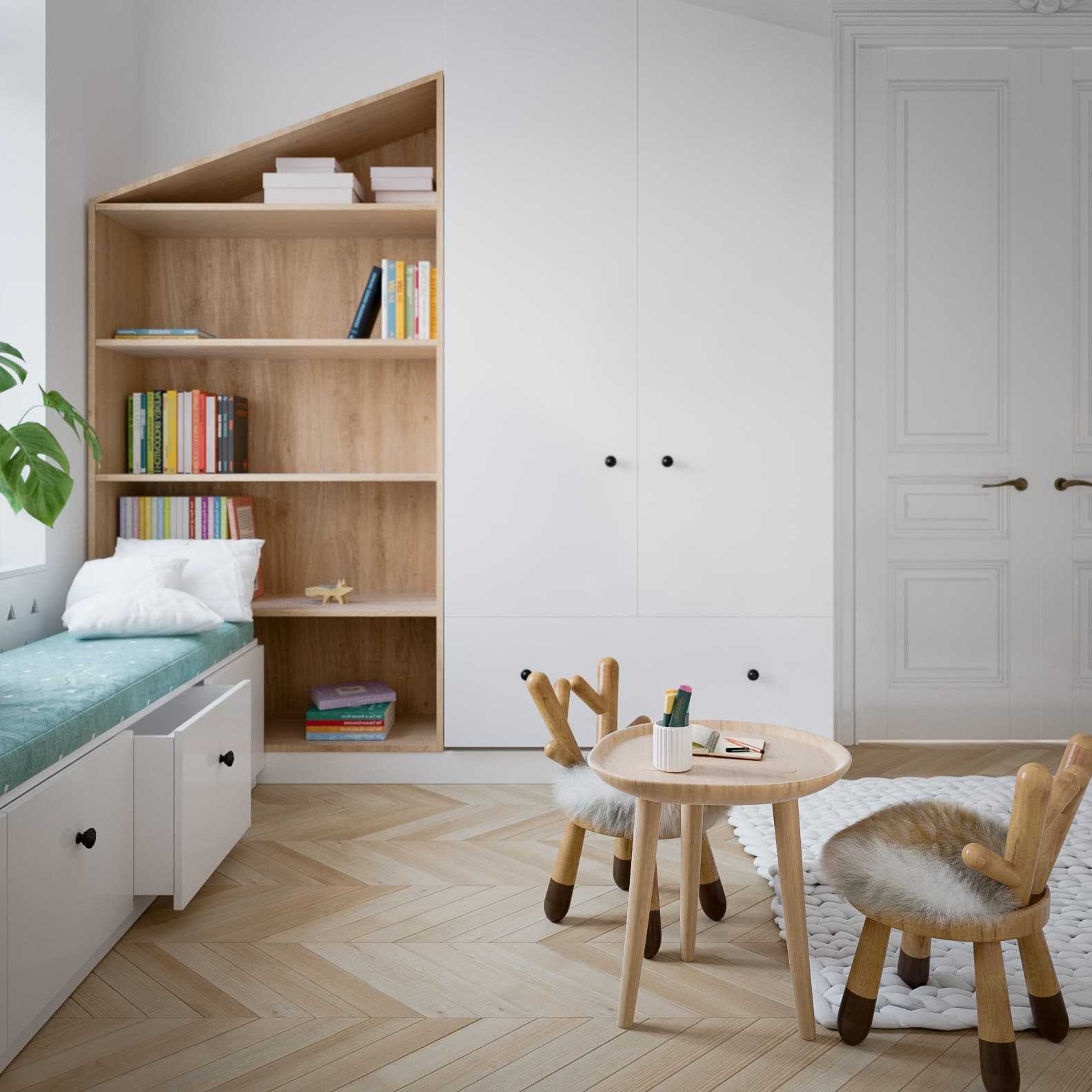 Минимализм актуален и для комнаты малыша или подростка — вместо множества игрушек, например, несколько самых любимых и качественных.