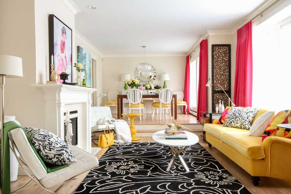 - Ретро — яркие, насыщенные тона, геометрические узоры, минималистичная мебель необычных форм.