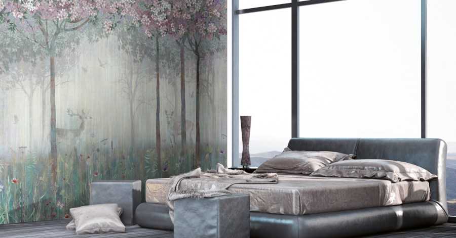 Подумайте, как интересно обыграть изголовье кровати. Используйте декупаж, виниловые наклейки, а если у кровати изголовья нет, можно самостоятельно создать его подобие. Сбейте деревянную раму и обтяните ее тканью. А изящное кованое изголовье можно просто нарисовать на стене в технике 3D.