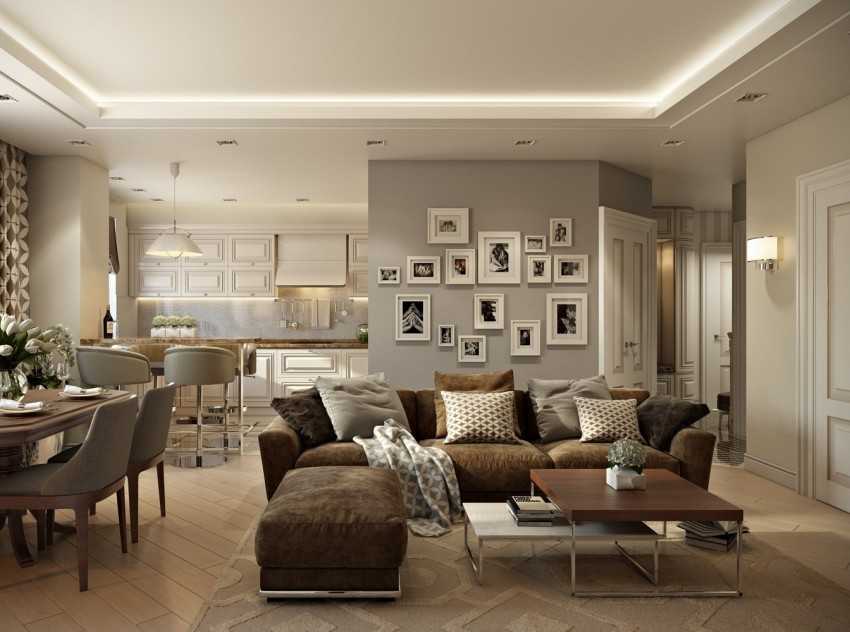 К тому же некоторые современные элементы декора, такие как карнизы или молдинги отлично дополнят дизайн гостиной.