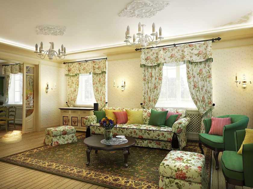 Кантри относится к популярным способам оформления интерьера гостиной, что легко объясняется его универсальностью. Дизайн в деревенском стиле органично смотрится в комнате любого размера и делает ее по-домашнему уютной. Чтобы создать атмосферу комфорта и непринужденности, необходимо знать особенности стиля и базовые правила выбора материалов, мебели и декора.