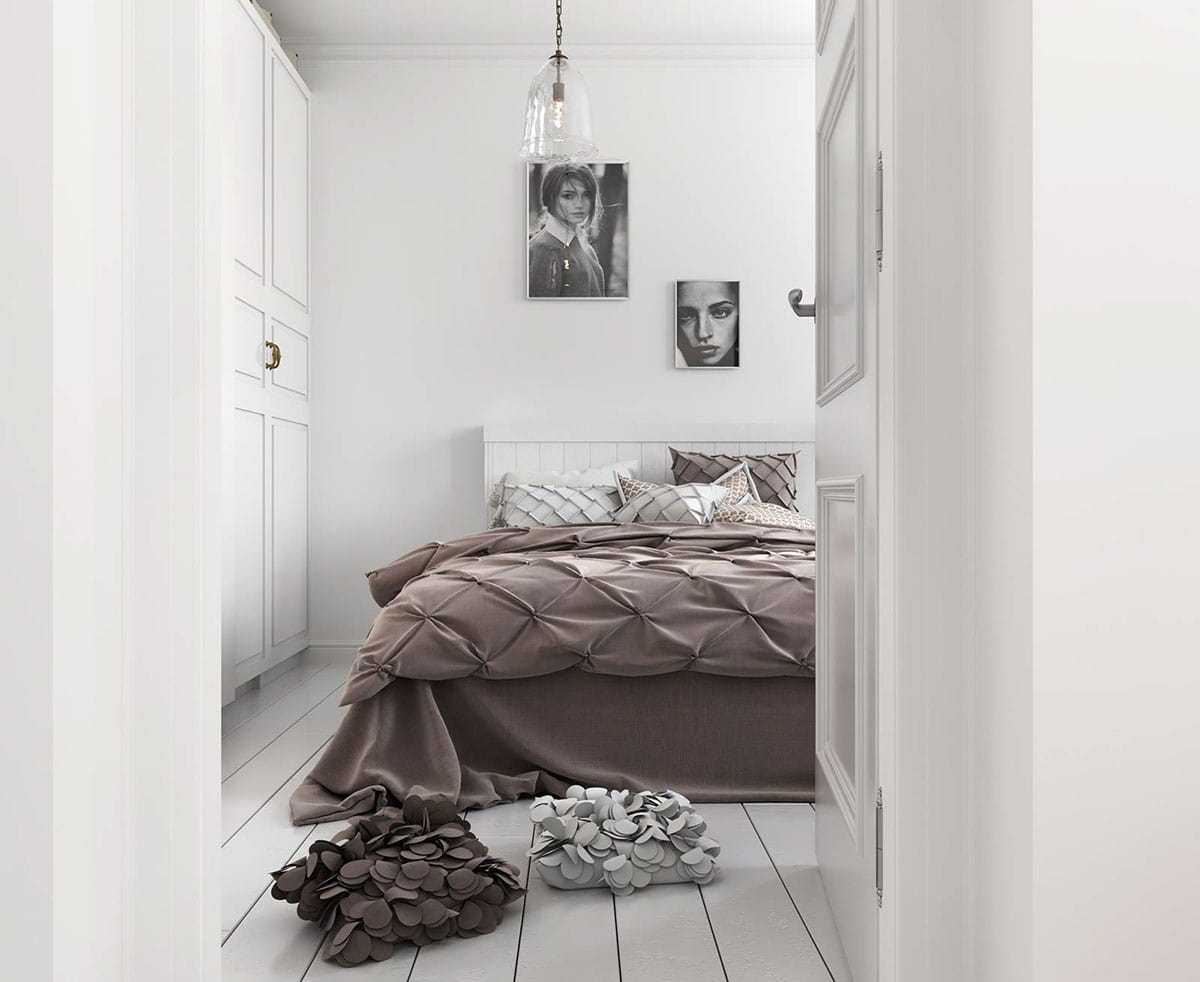 В скандинавском интерьере двери заменяются сквозными проемами. Их делают достаточно широкими для свободного прохождения света. Если же устанавливается дверь, она подбирается в тон стены.