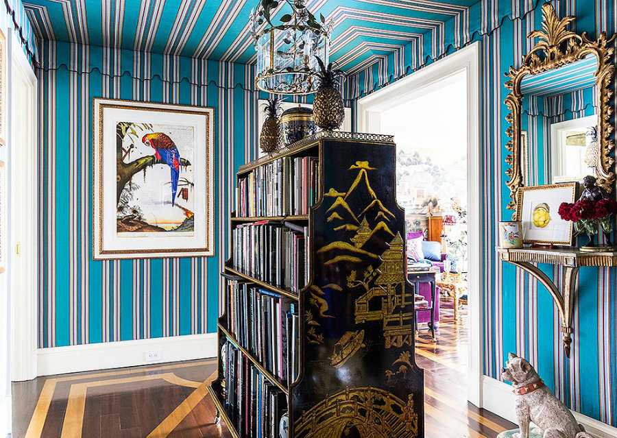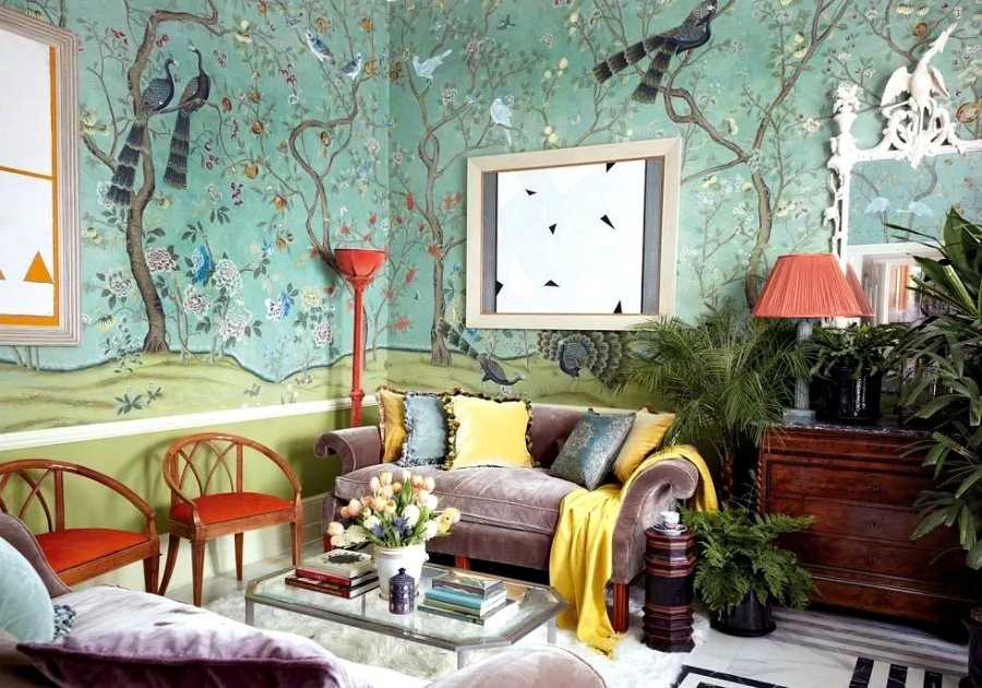 А как вам эти современные обои de Gournay St. Laurent Chinoiserie, украшенные яркими пейзажами восточного сада в современной яркой и эклектичной английской квартире? Их дизайн был вдохновлен набором старинных панно в парижских апартаментах Ив Сен-Лорана и Пьера Берже. Прекрасный пример использования стиля шинуазри в современном интерьере. И, как говорится, — «в ногу со временем».