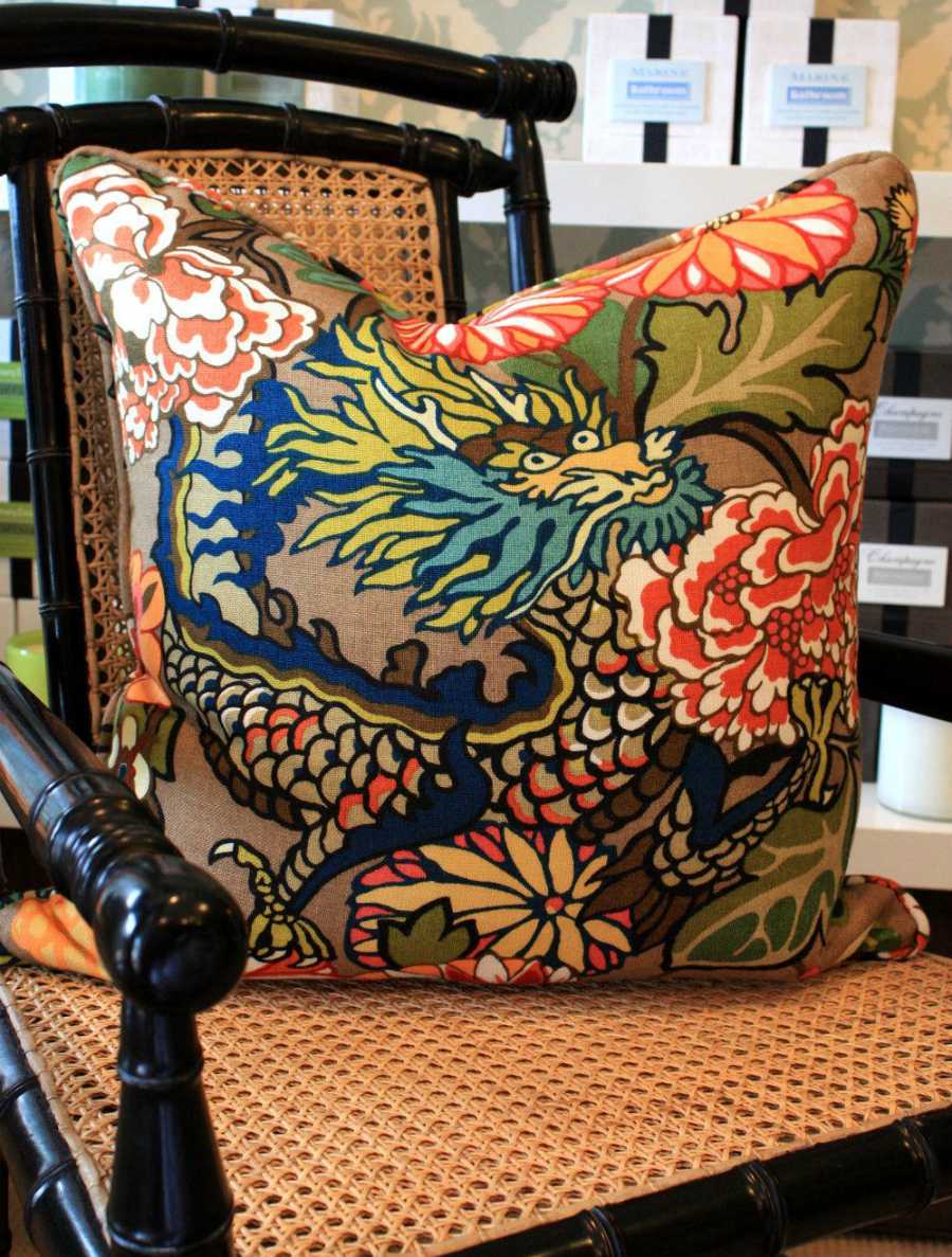 Драконы — еще один признак восточного (китайского) стиля и, конечно же, стиля шинуазри. Их изображения также могут быть на чем угодно. На мебели, стенах (даже в виде лепнины), на текстиле. Дракон в китайской культуре означал символ мудрости, богатства и удачи. А потому его лучше всего держать в доме на видном месте.