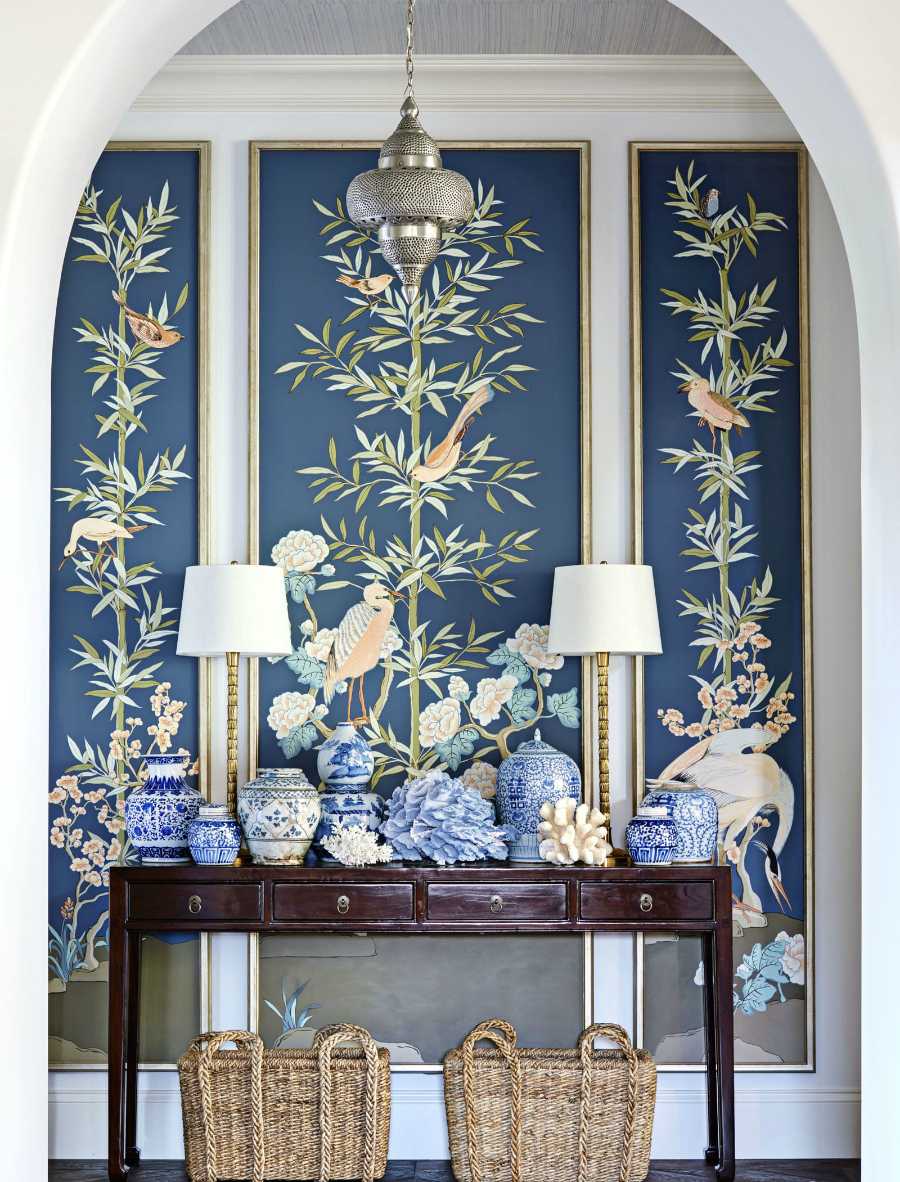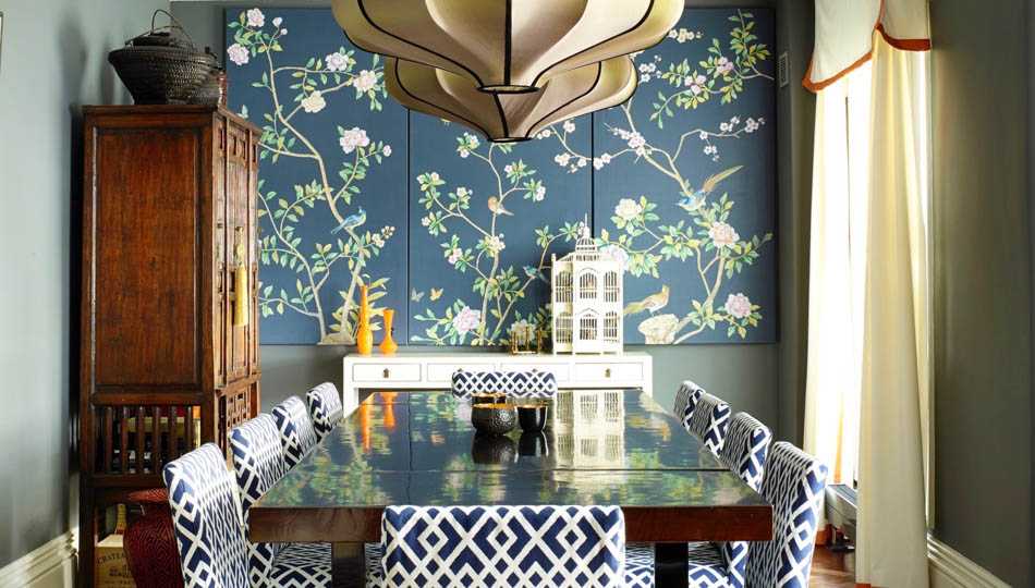 Китайские узоры в виде птиц и цветов находят широкое применение в современных интерьерах
