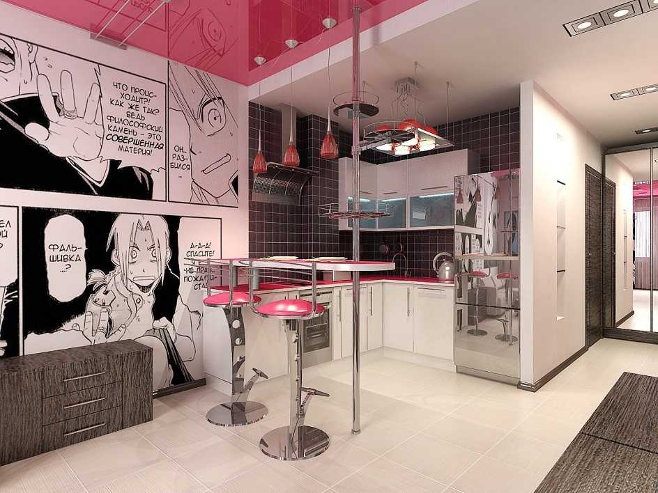 Стиль аниме в интерьере довольно свободный и ограничивается только вашей фантазией. Анимешные мультфильмы очень разнообразные. Героями этих мультиков могут быть как длинноногие барышни с цветными волосами и неординарными способностями, так и смелые, сильные красавцы, необычные разговаривающие животные. Мультики аниме смотрят по всему миру, их количество огромно. Поэтому, каждый может выбрать для своего интерьера именно то направление, которое ему наиболее по душе.