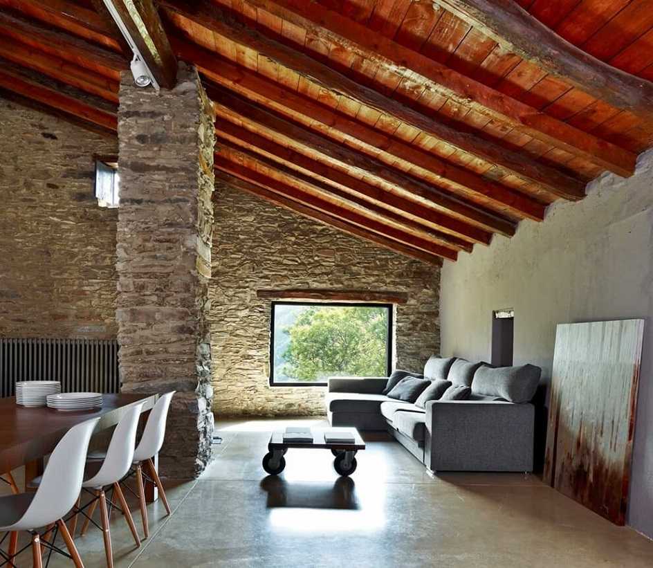 - Отделку помещений посредством простых натуральных материалов (камня, кирпича, древесины).