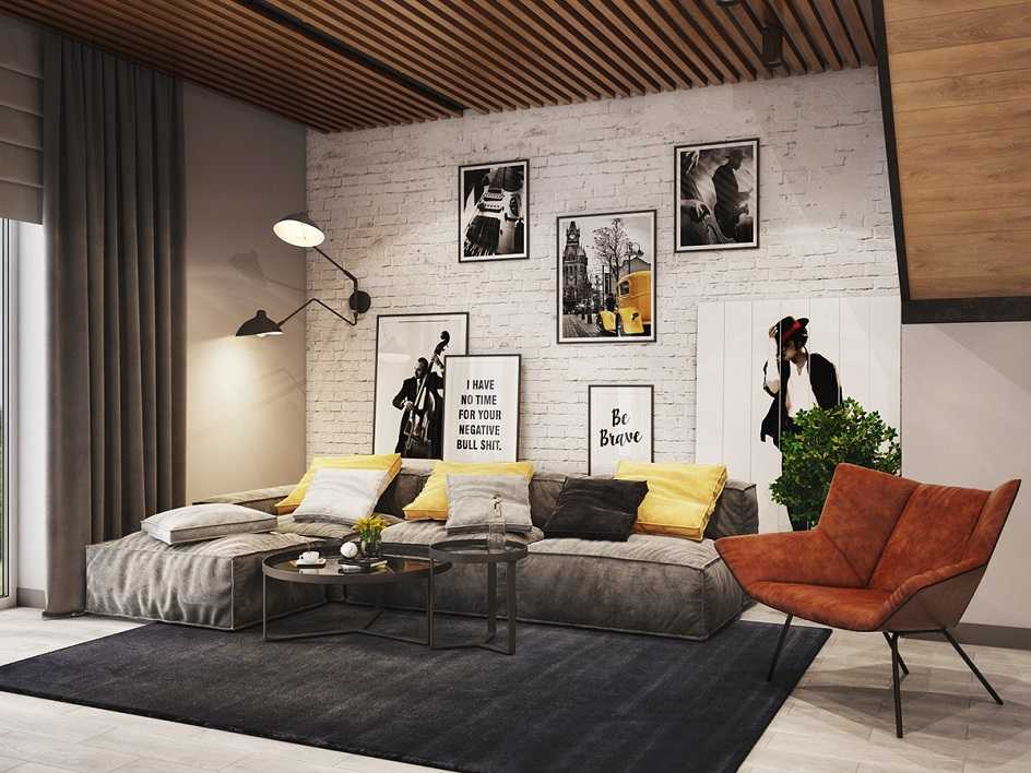 Большая гостиная в стиле гранж