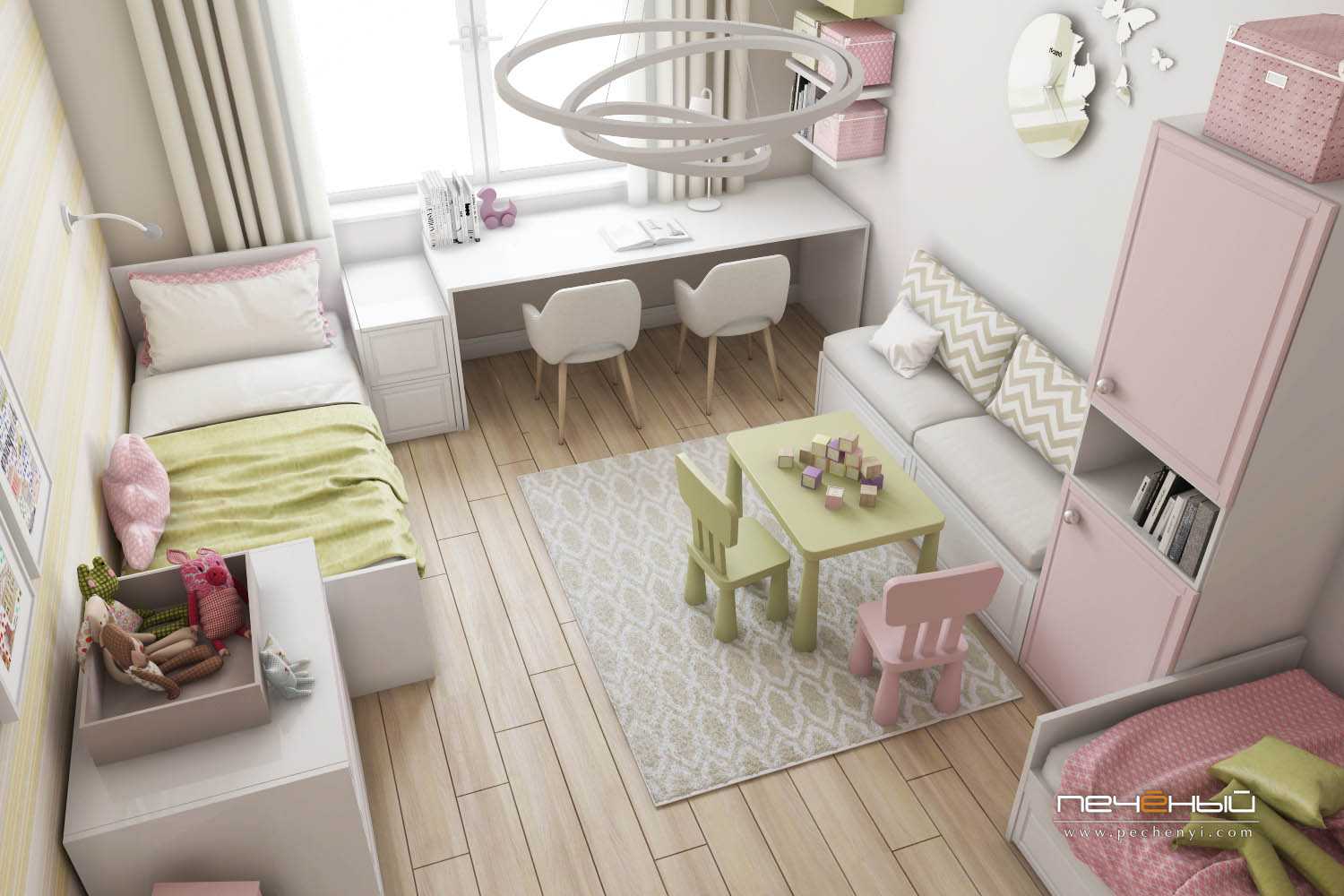Часто в маленьких квартирах самую спальню побольше отдают под детскую. Почему не под родительскую спальню? Потому что в спальне только спят, а детские — это многофункциональные комнаты. Кроме сна, ребёнок там ещё делает уроки, общается с друзьями, играет.