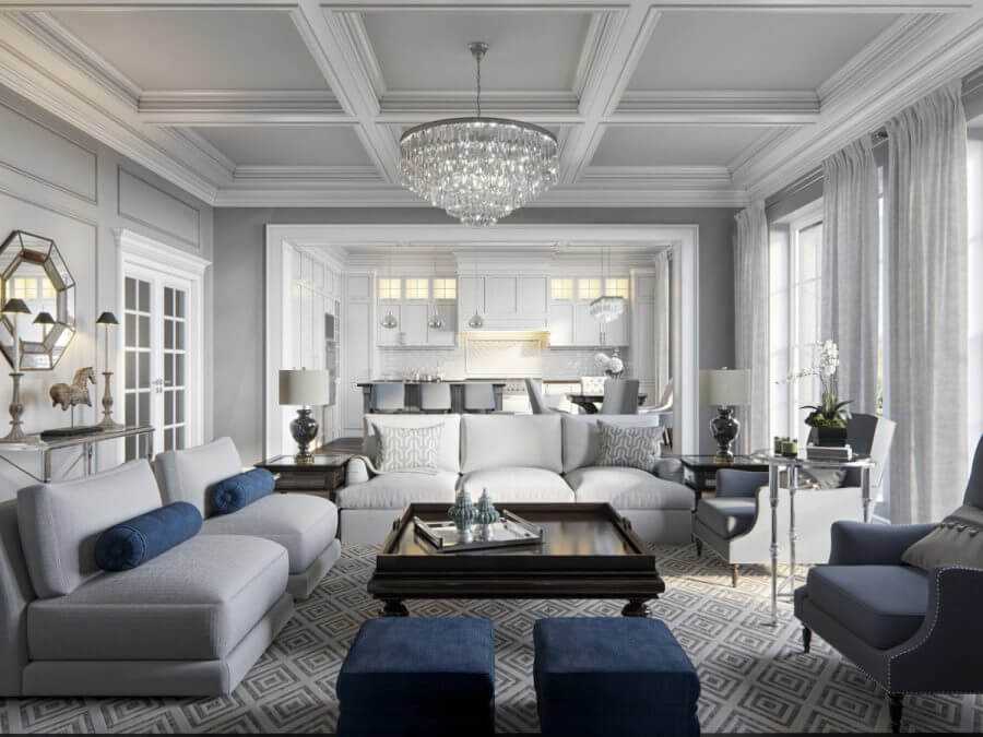 Для оформления потолков американские интерьеры предусматривает несколько вариантов: