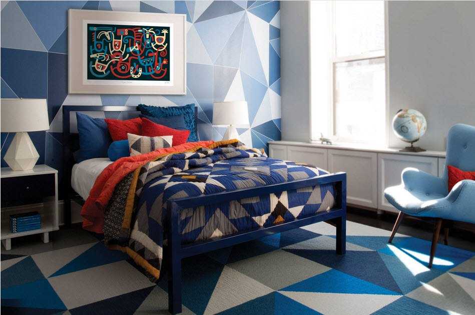 Также визуально расширяет стены мелкий неяркий принт на длинных стенах. На коротких, наоборот, можно использовать более крупный и броский по цветам.